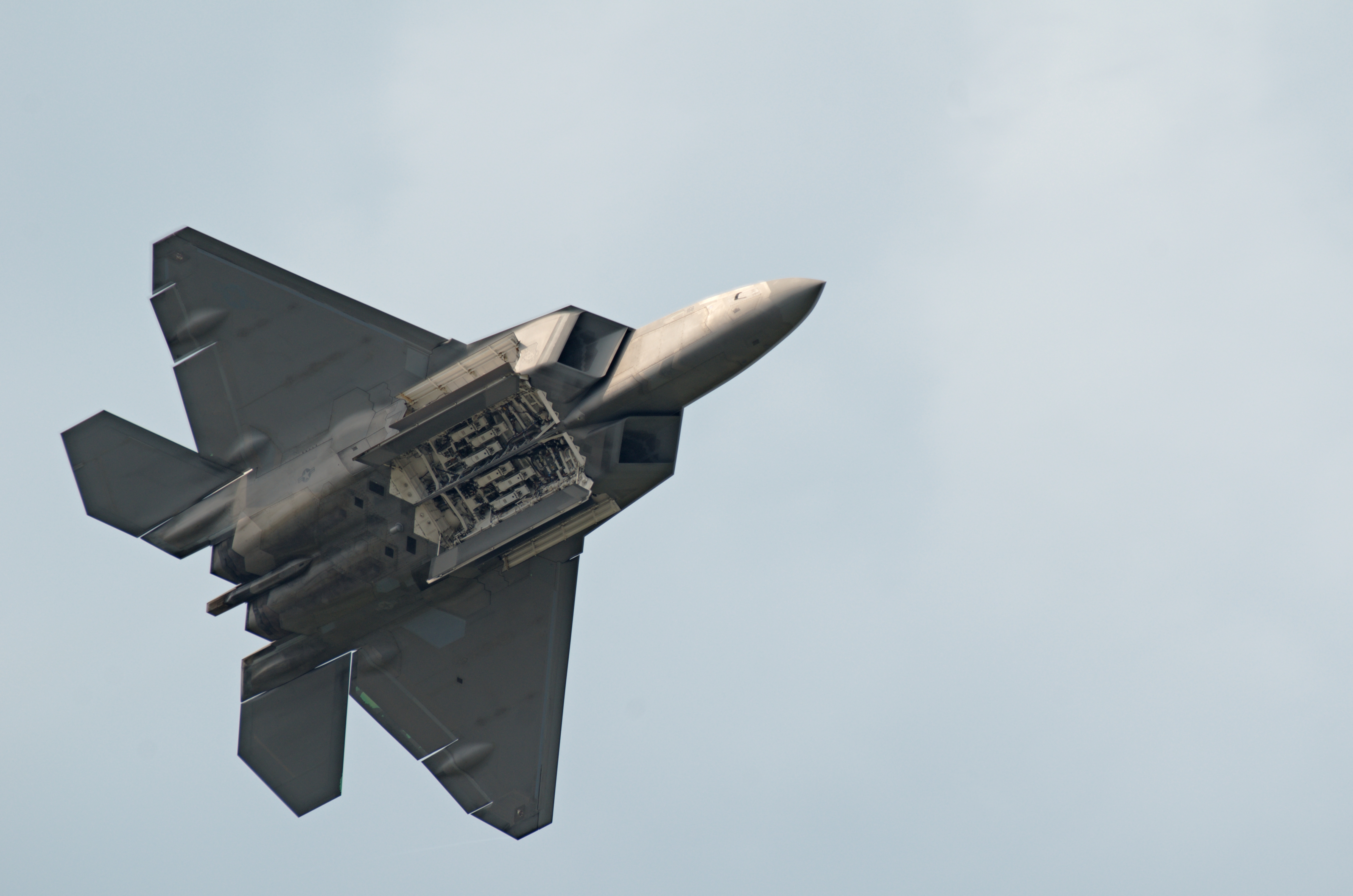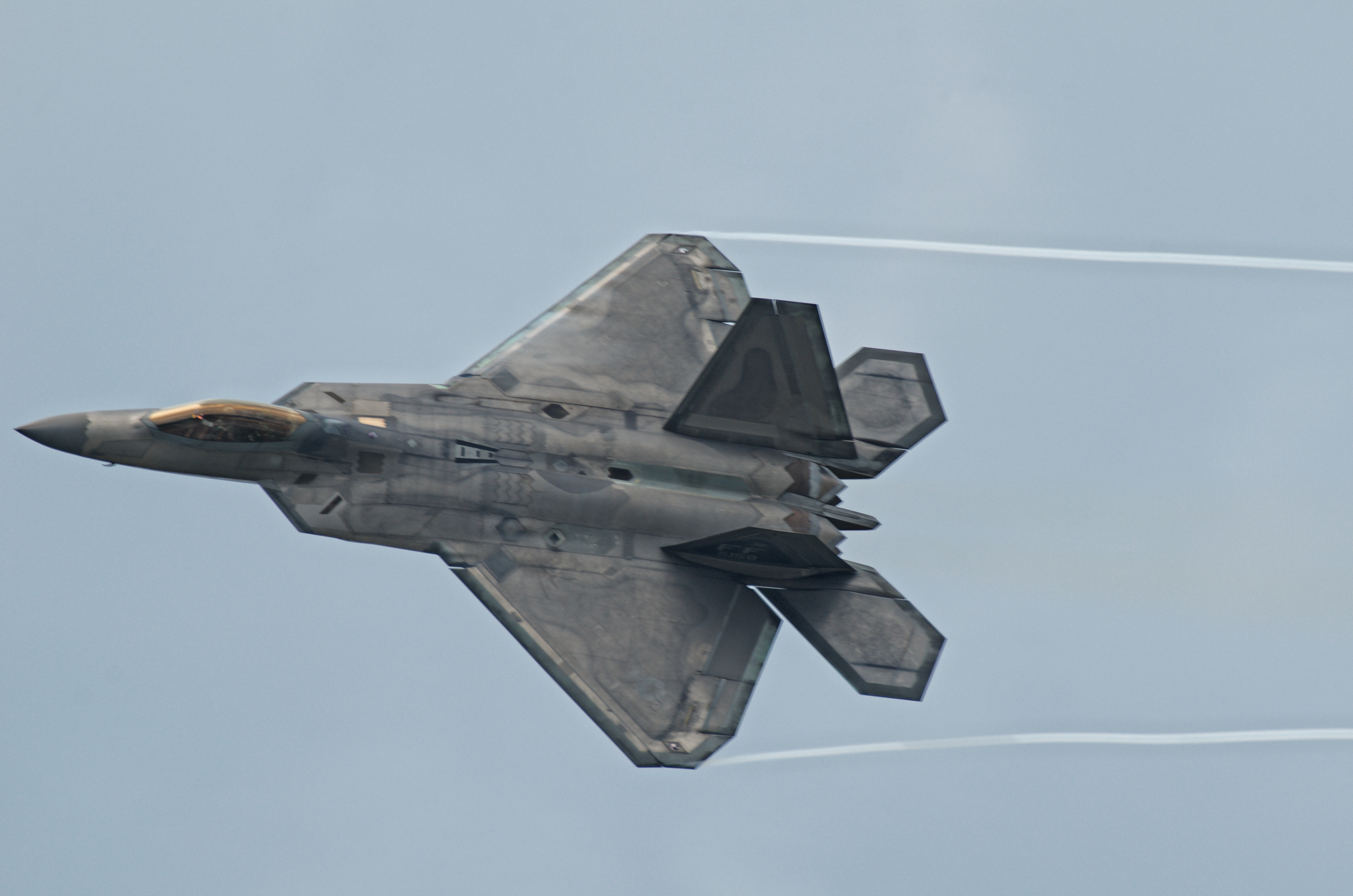 Here’s a U.S. Air Force F-22 Raptor really showed everyone that it pretty much could do anything, including blast out our eardrums. It went past us at 700 miles per hour and left such a retort that my ear, blocked by my hands, banged anyway. Take a look at this thing – it really seems like some kind of alien attack vessel, you know, the kind that comes down by the millions from the mother ship hovering just above our atmosphere.
