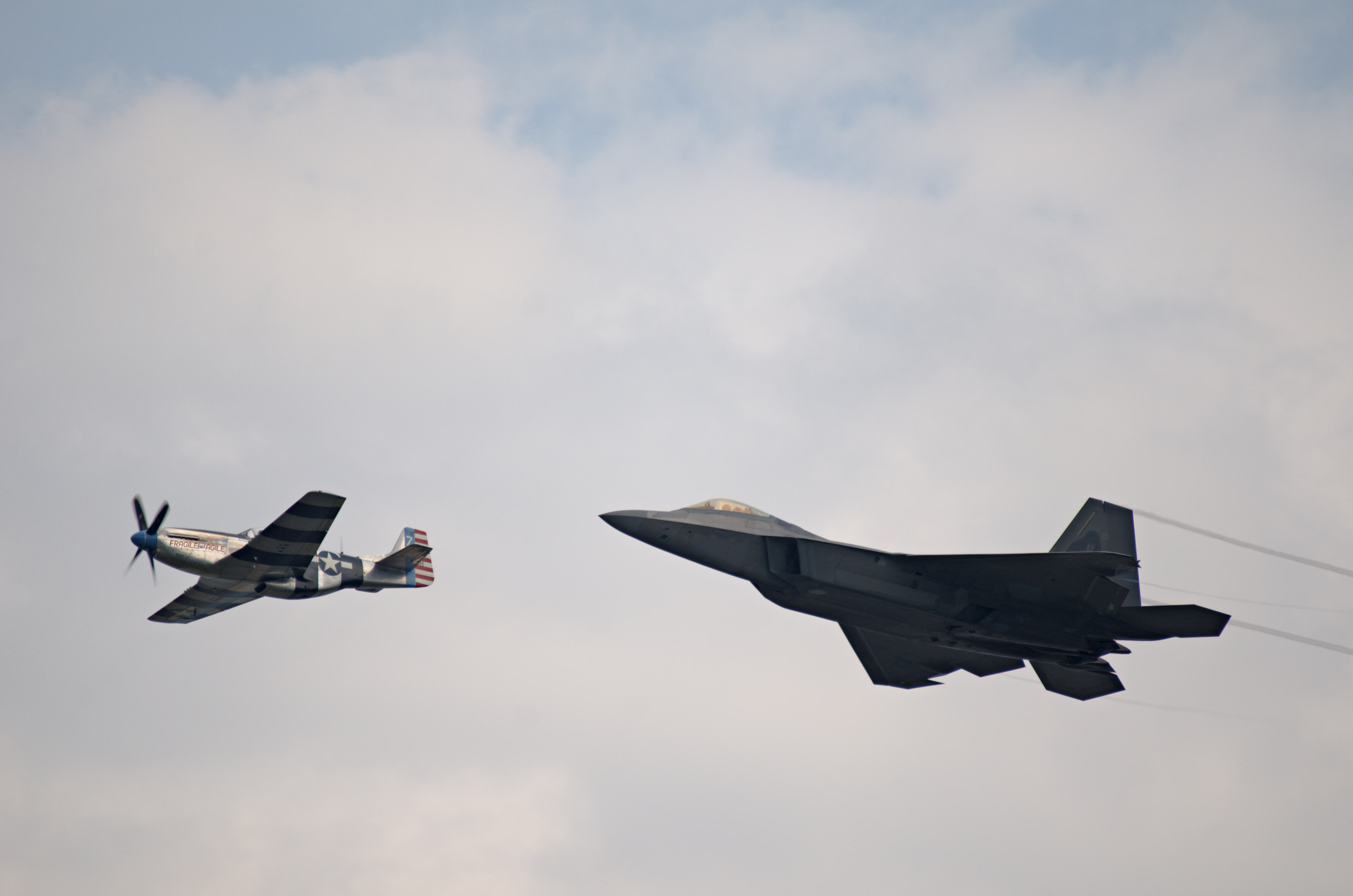 At the end of the show flew a top-of-the-line WWII fighter plane next to the F-22 Raptor. At first glance, it doesn’t seem like much of a comparison. Yet both flew proudly and with such grace, it really was a marvel to watch. The F-22 slowed to keep in time with its much older companion, but it didn’t take away from the fact that both protected our nation and allies.