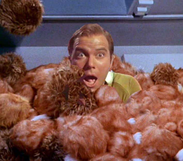 While our friend Captain James T. Kirk certainly wasn’t what I’d consider a motherly figure, he sure knew his way around reproduction, given the amount of female alien types he seemed to pick up and hit on. So it’s completely fitting that he’s burdened with a whole piles of lovable, adorable tribbles, who seemed to have taken a real shine to him. They kind of popped up all over the place in the space ship, giving rabbits a run for the money. Since Kirk was in charge of the ship, he fostered an environment for motherhood, since these things were determined to have been born pregnant.