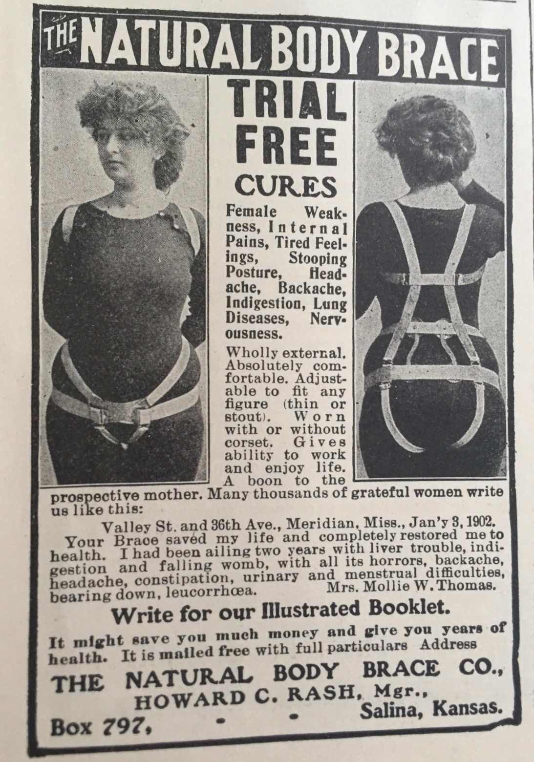 I’m sorry, but there’s nothing natural about these body braces. I can’t help but love the claim, “Cures ailments peculiar to women” and “Female weakness.” How can a gizmo such as the above help with liver trouble, lady’s headache, constipation AND make you more attractive? I do think this body brace would make an excellent addition to any modern-day steampunk costume and peculiarities collection.