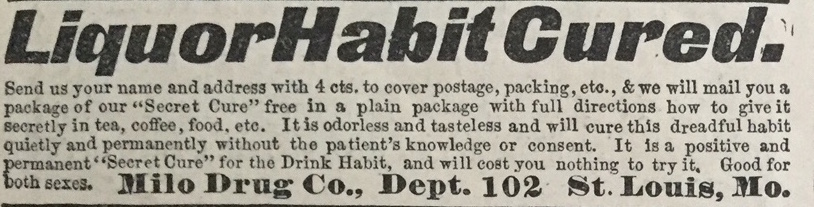 But then again, coffee might not be so bad when you can secretly slip in an odorless, tasteless cure, quietly and permanently without the patient’s knowledge or consent, to cure that evil liquor habit. Sure, because they’ll be dead. At least it’s good for both sexes.